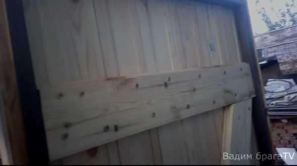 - Если изготовление обвязки затруднительно, то вместо нее по торцам двери нужно прибить деревянные бруски, имеющие нужные размеры. Эта процедура защитит дверные доски от попадания влаги.