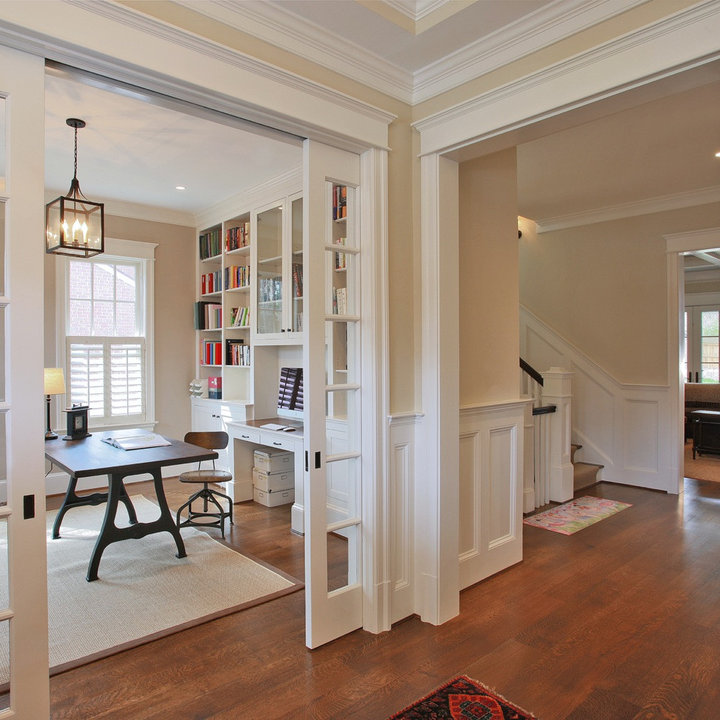 Если вы не хотите устанавливать дверь между столовой и гостиной, вы можете разделить их элегантным книжным шкафом. Таким образом, вы превратите свой дверной проем в полезное и уникальное место.