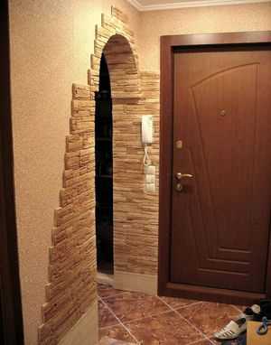 В последнее время очень стильным стало оформление дверных проемов декоративным камнем. При этом несмотря на отсутствие двери, это довольно дорогой способ. Установка камня требует наличия определенных навыков и опыта.