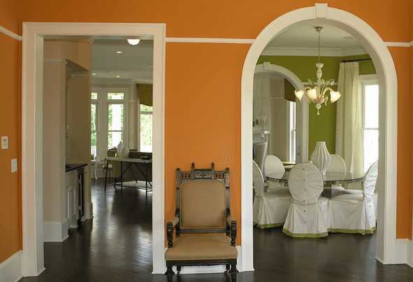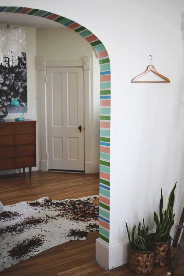 Не обязательно использовать для украшения арки дорогие материалы. Для современных интерьеров более уместна обычная покраска дверного проема.