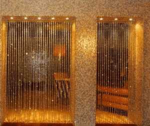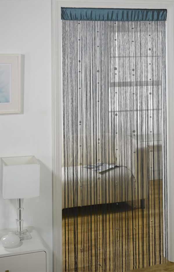 Похожий вариант – нитяные гардины. Они являются переплетением жгутиков, скрепленных в одну ленту. Классический вариант – это тканевые шнуры, но если посмотреть на фото дизайнерских решений, то можно встретить жгуты из стекла, ракушек и камушек.
