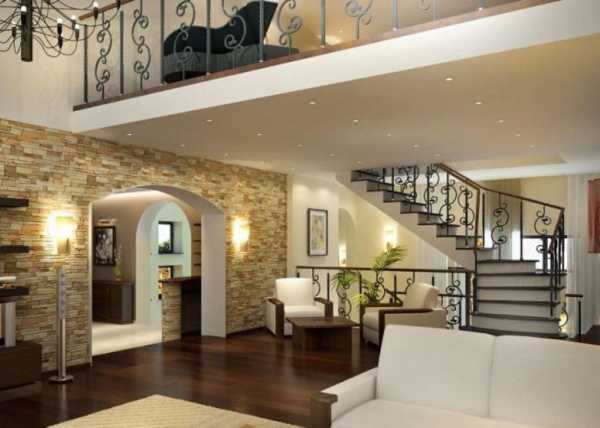 - Такой прием позволит объединить две комнаты с разными функциями в одно целое. Особенно уместно будет отделать аркой вход в гостиную, библиотеку или на кухню.