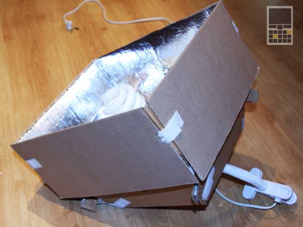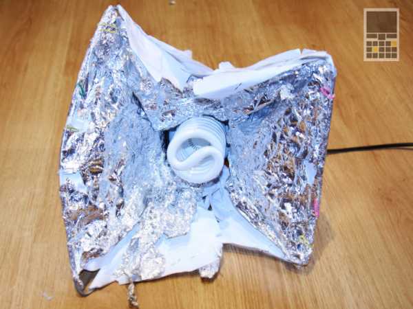 - Для этого сверху накрываем ящик данной конструкцией, а стенки обкладываем бумагой, чтобы свет от лампы отражался назад в ящик от 4-х сторон и не попадал в комнату.