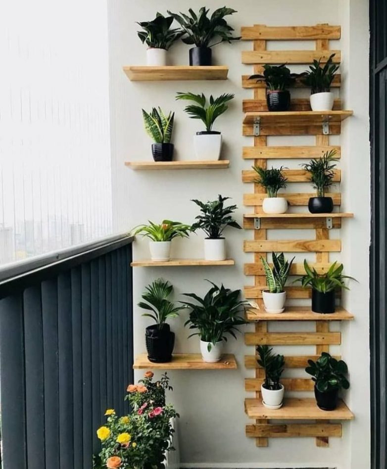 - Настенные полки. Такие варианты используют для расположения небольших цветочных горшков. Занимают они мало места, но требуют обязательного укрепления на стене.