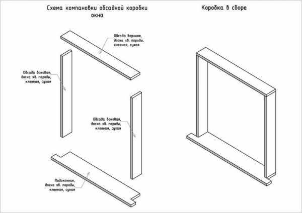Короб является хоть и самым простым элементам окна, к его изготовлению нужно подходить очень ответственно, так как именно он принимает на себя всю нагрузку от окна. Для изготовления короба можно использовать лишь хорошо просушенные доски, без каких либо дефектов. Отличным вариантом являются сосновые доски, так как достаточно устойчивы к воздействию влаги.