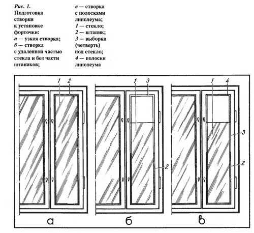 | В подавляющем большинстве наших квартир установлены оконные блоки со спаренными переплетами и с узкой створкой, которая призвана по замыслу проектировщиков выполнять функции форточки. Однако открывать эту створку для проветривания удобно далеко не всегда, и нужда в традиционной небольшой форточке, расположенной в верхней части окна, заставляет переделывать створку.
