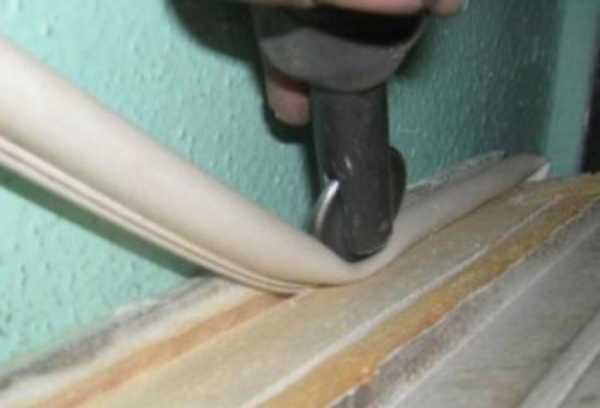 - В подготовленный паз вставляется специальный силиконовый утеплитель.