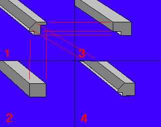 - На поперечине выполняем с обоих концов пропил – ширина 40 мм, а глубина - 10 мм.