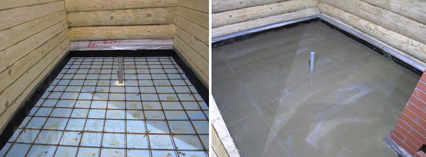В помывочной и парной предпочтителен пол из бетона – он гораздо долговечнее деревянного. Последовательность гидроизоляции бетонного пола в бане: