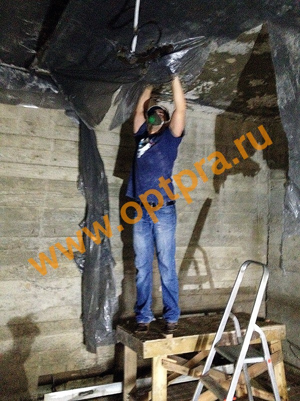 Кроме того, что при выполнении гидроизоляционных работ проникающими материалами должны быть открыты поры, сам бетон должен быть насыщен влагой. Поэтому если потолок полностью сухой, его необходимо обильно увлажнить несколько раз.