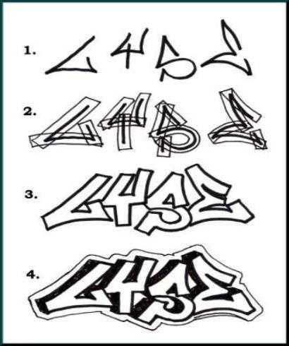 Граффити - относительно новый вид искусства. Он привлекает в свои ряды как молодых людей, так и представителей более старшей возрастной категории. Граффити тесно связан с тинэйджерской хип-хоп культурой. Сегодня искусство надписей перешло на новый уровень популярности и получило относительную законность. Даже в известной социальной сети "ВКонтакте" в настоящее время появилась программа, которая позволяет онлайн испытать свои силы в этом новомодном течении. А сегодня мы узнаем, как нарисовать граффити карандашом поэтапно на бумаге. Изображение потом можно будет раскрасить фломастерами или красками.