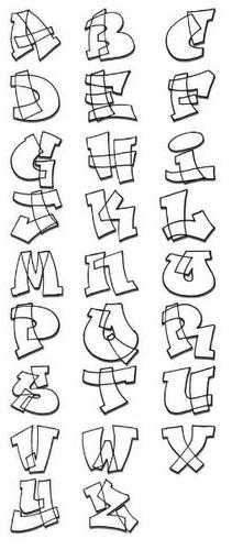 4. Приступать к рисованию граффити карандашом необходимо с отображения букв алфавита. Одними из основных элементов данного искусства, как правило, являются короткие тексты. Человеку, не разбирающемуся в граффити, зачастую бывает очень сложно понять нарисованные буквы, ведь они скрываются за причудливыми формами. Их традиционным стилем отображения является форма некого пузыря. Символы в таком варианте кажутся объемными.