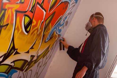 Аэрозоли в воздухе вредны для человека, поэтому, выполняя граффити в помещении, обеспечьте хорошее проветривание и не пренебрегайте респиратором.