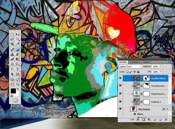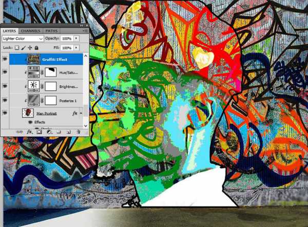 Измените режим наложения этого слоя, с копией текстуры граффити, на Светлее (Lighter Color)