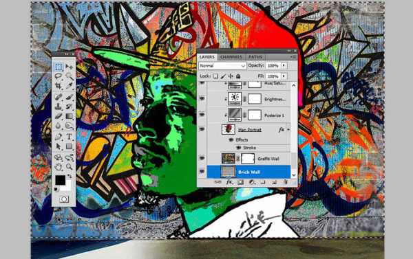 В этом уроке вы узнали, как создать эффект граффити в Photoshop с нуля, используя кисти и текстуру, фильтры и корректирующие слои. Я надеюсь, что вам пригодится этот урок в будущем, для создания своих работ!