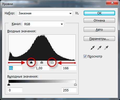 Перейдите к Изображение (Image) - Коррекция (Adjustments) - Уровни (Levels) и установите значения как на изображении ниже: