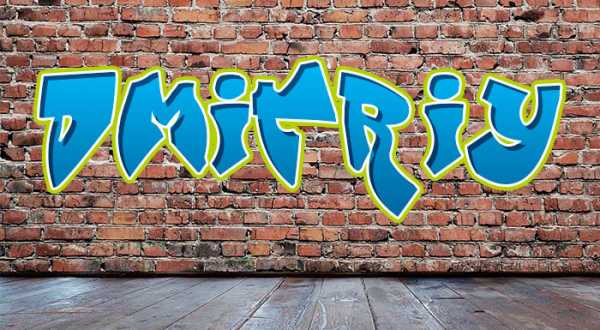 Подошло время создания текста!Для надписи, вы можете, конечно, использовать любой шрифт, который захотите, но чтобы получить лучший эффект "граффити" в вашем дизайне, рекомендуется использовать шрифт именно в стиле граффити. В данном примере я использовал шрифт Zit Graffiti, скачать, который, вместе с другими шрифтами этого стиля, в т.ч., поддерживающими русские буквы, вы можете на этой страничке. Но, к сожалению, сам Zit Graffiti кириллицу не поддерживает. Я выбрал его из-за того, что при вводе в строчных букв, буквы залиты цветом, а если Вы вводите буквы верхнего регистра, то получаете только контур. Так как я хочу, чтобы мой текст был залит цветом, я буду вводить текст в нижнем регистре. Для примера я вбил своё имя: