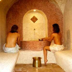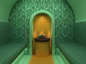 Турецкий хаммам включает парилку, подсобное помещение и комнату для отдыха. Здесь в отличие от других бань всегда приятный мягкий микроклимат: комфортный температурный режим и высокая влажность. Весь интерьер в турецкой бане: дизайн, теплые поверхности пола, столов и лежаков, мягкий пар с великолепным ароматом, рассеянное освещение направлен на создание атмосферы расслабления.