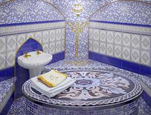 Турецкая баня возникла как прототип древнеримской термы и располагает многовековой историей. Хаммам оказывает благоприятное воздействие на человеческий организм за счет пара, поступающего в парилку по трубопроводу из соседнего помещения.
