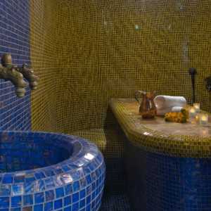 Внутри хаммам отделывают мраморной плиткой или камнем. В последнее время весьма успешно применяют современные отделочные материалы, не уступающие им по своим свойствам: стеклянную мозаику и плитку из керамики.