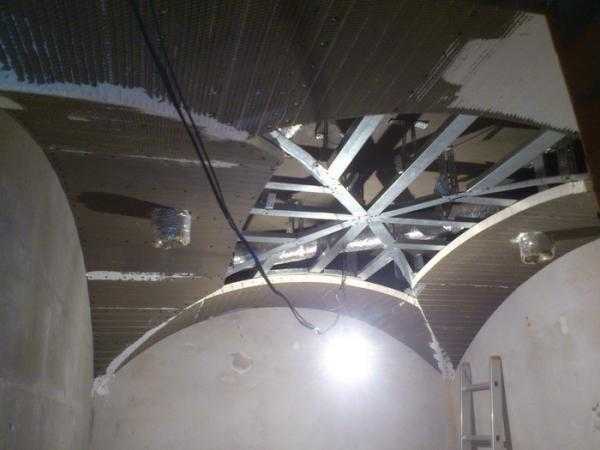 Так как система стока будет монтироваться в единую канализационную систему, то в полу делают заглушку. она будет предохранять помещение от проникновения неприятных запахов. Потолок делают округлым в форме купола.