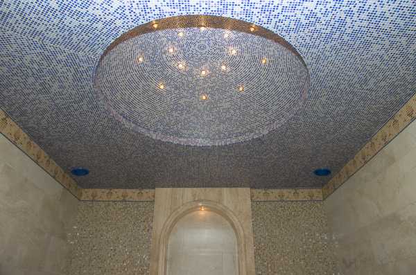 Отдельной частью хамама, на которую нужно обратить особое внимание, является потолок. Поскольку температура воздуха здесь не очень высокая (всего 30 градусов), а пара около 55-ти, соответственно, в таких условиях будет образовываться конденсат. Для того чтобы он не капал на голову, создавая неприятные ощущения, в хамамах обычно используются потолки куполообразной формы.