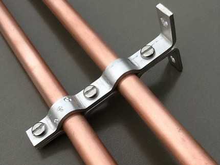 В продаже можно встретить даже хомуты, оборудованные элементами заземления. В их конструкции предусмотрены стержни с заостренными концами, призванные создавать надежный электрический контакт монтируемой трубы с контурами заземления.