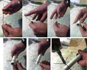 Теперь, когда у вас в руках проволока, согнутая вдвое, необходимо на месте сгиба сделать правильное "ушко", причем диаметр "ушка" должен совпадать с отверткой, которая должна свободно входить в него. Чтоб выдержать такой размер, достаточно разогнуть концы, вставить между ними отвертку и снова их свести вместе. Конечно, лучше всего для таких целей подойдет крестовая отвертка, она по всей длине ровная и не имеет расширения, в отличие от плоской. Далее нужно отогнуть полученное "ушко" в сторону, относительно длины проволоки, оно будет выполнять функцию замка.