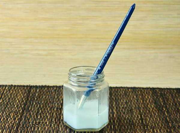 Туда же наливаем растительное масло и воду. Все хорошо смешиваем и кисточкой наносим эмульсию на стенки бутылки.