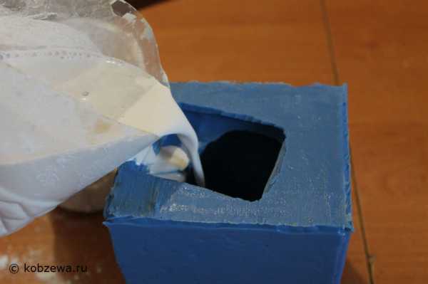 Не забывайте о том, что текучесть такой раствор сохраняет всего несколько минут, поэтому нужно предварительно позаботиться о подготовке желаемой формы.