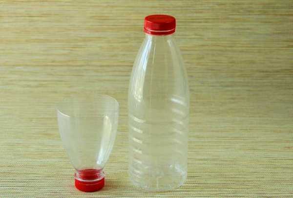 От пустой пластиковой бутылки, например из-под молока, отрезаем горлышко, которое послужит нам формой для создания ножки гриба.