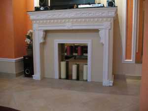 Необходимо сразу сказать, что ничего особо сложного в изготовлении этого элемента декора нет, и его может выполнить не только мужчина, имеющий навыки в строительстве, но и хозяйка квартиры. Тем более что работа не трудоемка и не требует особых приспособлений и инструментов. Максимум, что потребуется для процесса — это фантазия при внешнем оформлении камина, которое легко можно разнообразить благодаря тому, что в продаже в наше время имеется большой ассортимент пенополиуретановых декоративных элементов, имитирующих лепнину, колонны и другие украшения. Если эскиз самого камина будет разработан самостоятельно, и для него будут правильно подобраны декоративные детали, то сама конструкция может получиться абсолютно оригинальной и эксклюзивной.