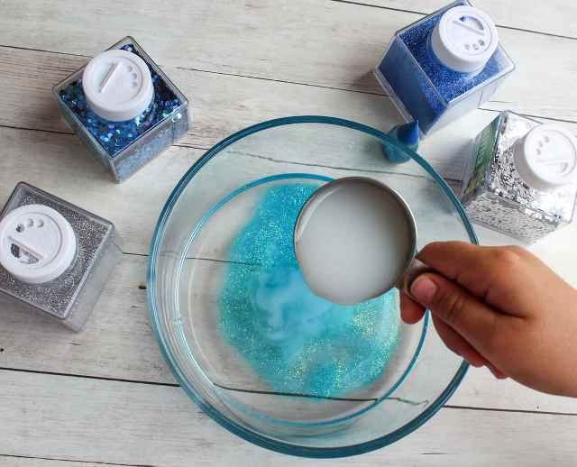 Нагрейте 1/2 стакана клея в микроволновой печи в течение 15 секунд.