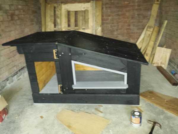 После этого я окрасил конуру снаружи, черной матовой краской для улицы. Пол, внутренние стены и потолок были покрыты грунтовкой и залакированы.
