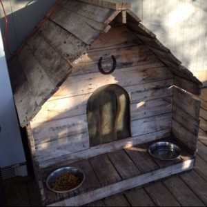 Собака отнеслась вначале немного скептически, но через пару недель и после того как внутри было постелено одеяло она с удовольствием стала туда ходить и есть свои косточки. Еще полюбила забираться на крышу будки и лаять на посторонних.