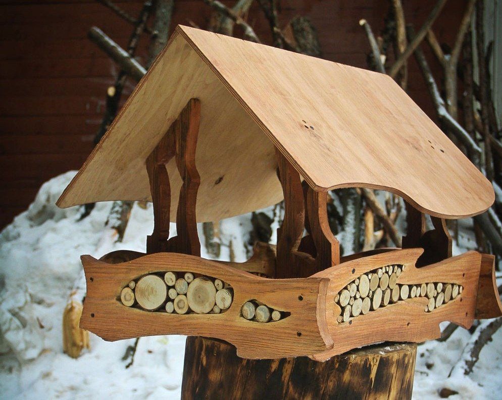 А если вы сами увлекаетесь выпиливанием лобзиком по фанере, то можете придумать свой авторский дизайн кормушки. И ваши идеи могут дать зимний приют голодным птицам.