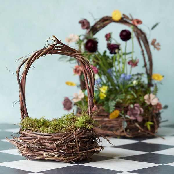 Чтобы закрепить ручку в корзине, найдите хорошие отверстия и просто вставьте концы вниз, пока они не станут безопасными. Вы можете обмотать ручки более тонкой лозой, фактически завязав их на месте. Если вы хотите, чтобы ручка выдержала какой-либо вес, вы можете вернуться после того, как корзина высохнет, и действительно закрепить концы. Вы можете сделать это с помощью бечевки или тонкой проволоки, обернутой коричневой флористической лентой (чтобы она была липкой и чтобы замаскировать ее).
