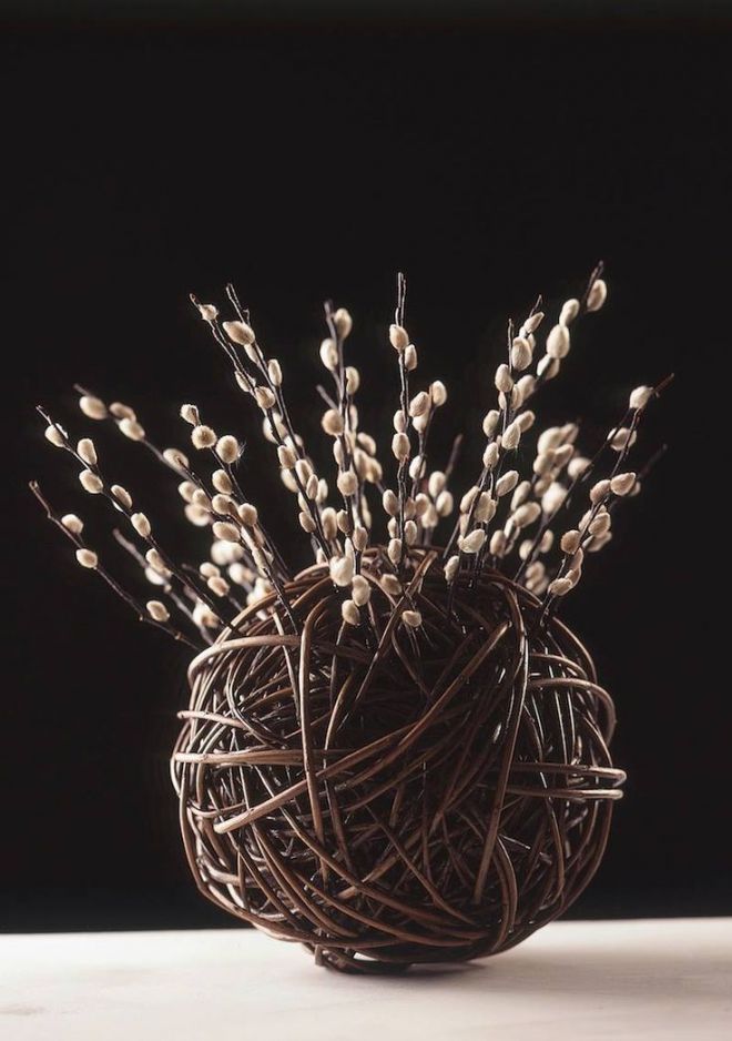 - Около дюжины толстых ивовых плетей: они станут основой и ручкой. Некоторые люди высушивают кусочки ивы, а затем повторно увлажняют их.
