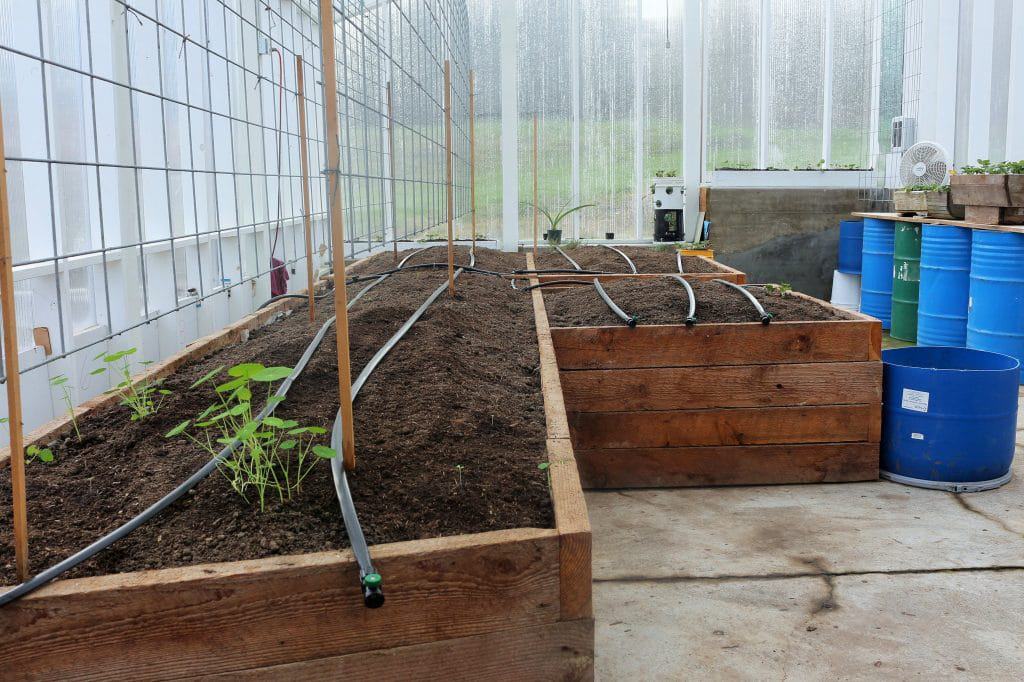 Обязательно установите систему капельного орошения для приподнятых грядок в теплице.