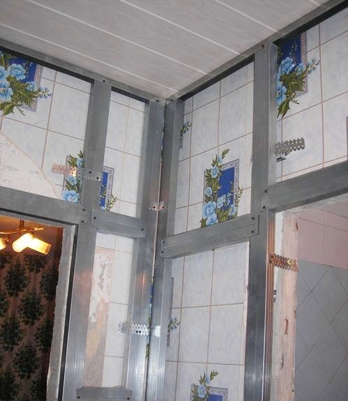 Потом начинают разметку опорных конструкций каркаса. Они располагается перпендикулярно панелям из ПВХ (60 см друг от друга).