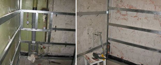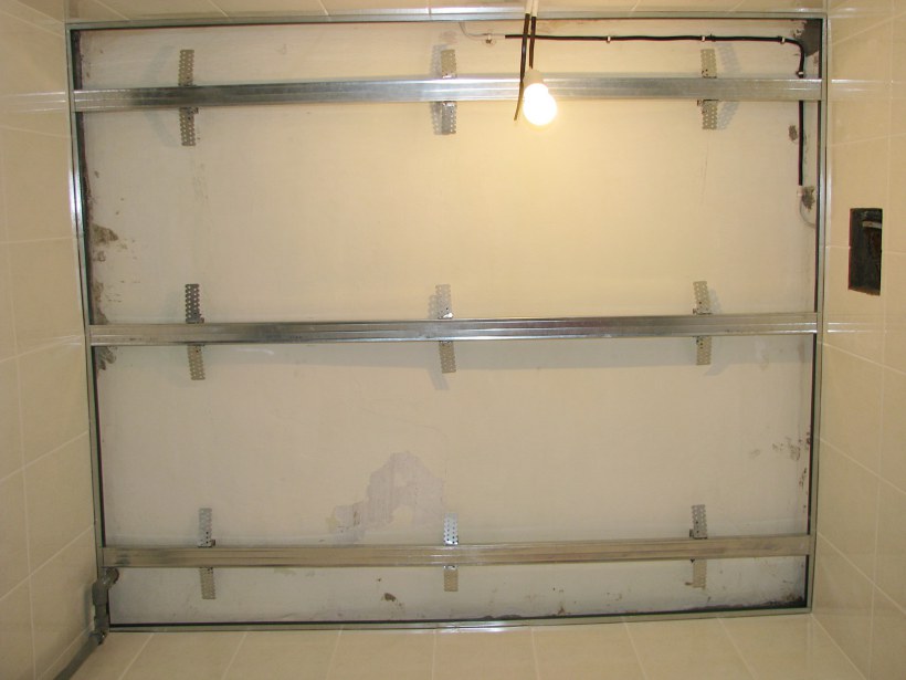 - стены выравниваем и грунтуем, после этого можно крепить каркас;