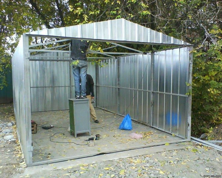 Это простая конструкция, требующая минимум усилий. Для этого не нужна спецтехника, нет необходимости специально нанимать бригаду, чертить чертежи. Если место под строительство найдено, то определитесь с размерами гаража, расчищайте место от растений и создавайте гравийную подушку. Земля должна быть утрамбована. После этого можно начинать непосредственно строительство. Оно будет состоять из следующих этапов: