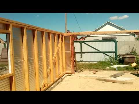 Понадобится профильная труба 40х40 и 40х20. Такой каркас изготавливают очень легко, по углам приваривают уголки. Предусмотрите ворота и дверной проем с одной стороны.