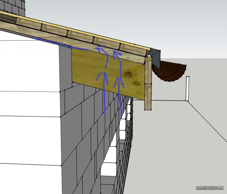 Если ширина свеса крыши превышает 90 см, то этот параметр можно увеличить до 12 мм. - Лобовая доска закрывается специальной планкой.