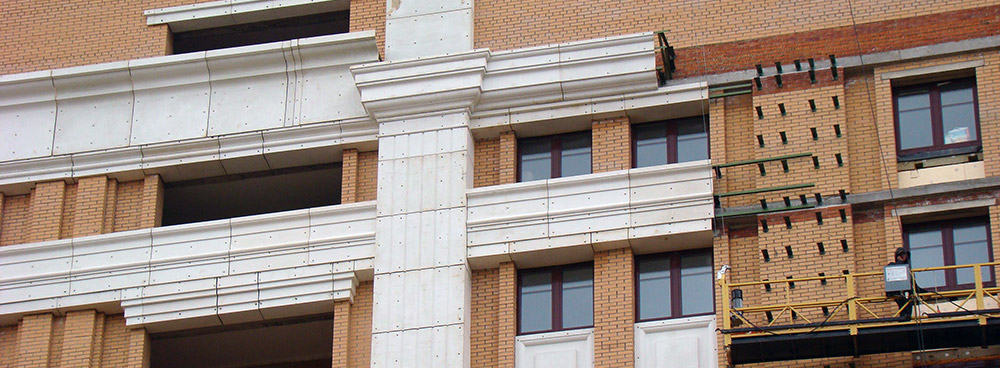 Начинать монтаж фасадного декора желательно спустя 6 месяцев после возведения дома, то есть после его усадки. В противном случае возможно возникновение усадочных микротрещин на стыковочных швах. В случае если у Вас нет времени ждать и архитектурный декор устанавливаются на недавно возведенное здание, то отложите хотя бы заделку стыковочных швов, тем самым снизив риск возникновения микротрещин.