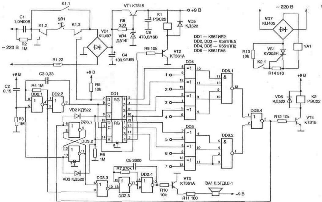 Электронный кодовый замок – принципиальная схема