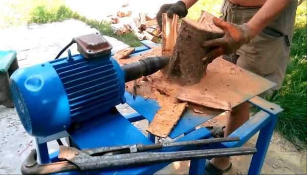 Примечание: В тех случаях, когда возможен перепад напряжения или перебои в поставке электроэнергии, приспособление можно оснастить двигателем внутреннего сгорания с цепной передачей. Очень важно при работе с таким устройством знать, что на конус, при его вращении, поленья можно подавать только вертикально.