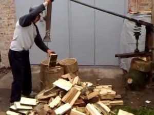 Есть еще самые разные аппараты для колки дров: механические, гидравлические, электрические или с моторами, работающими на бензине/дизтопливе. Механическая колка дров представляет собой станок, в котором фиксируется чурбак. Потом при помощи системы рычагов приводится в действие колун. Такие устройства могут иметь разный вид, некоторые могут сразу колоть полено на несколько частей, но принцип все тот же.