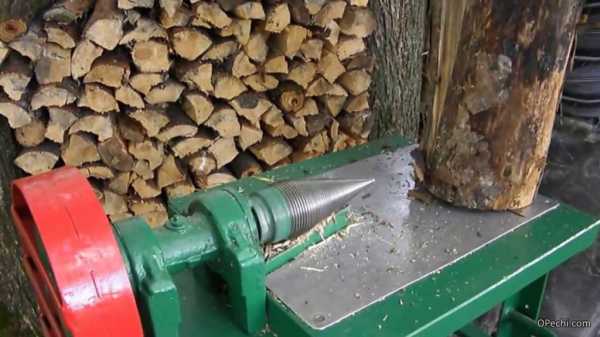 Наиболее современно и практично смотрится электростанок для колки дров. Использование электродвигателя при проведении такой операции позволяет в значительной степени автоматизировать процесс. Наиболее простой вариант основывается на внедрении в древесину конусообразного вращающегося элемента. Конусное исполнение органа позволяет расколоть бревно, но для этого надо практическим путем правильно подобрать угол конусности.