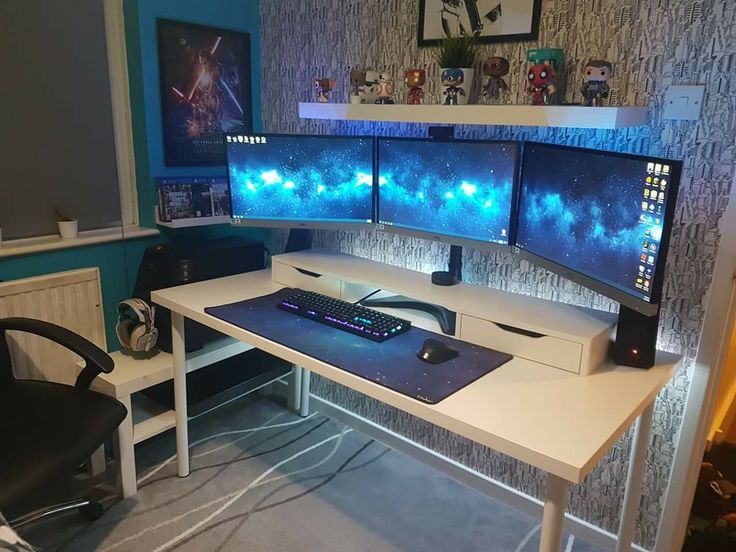 Если у вас уже есть угловой стол или угловая тумба под телевизор, вы можете превратить его в компьютерный стол, подобный этому.